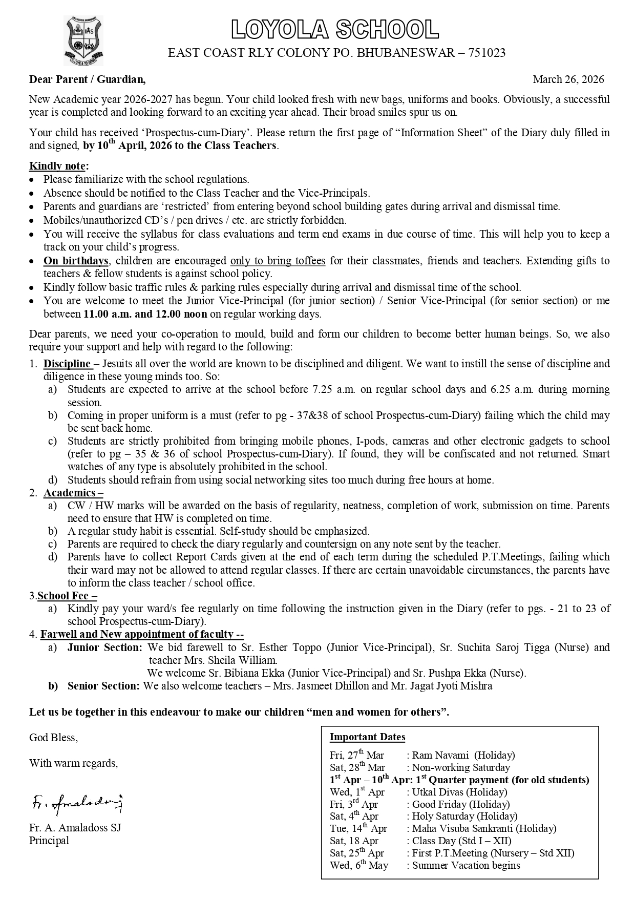 It gives me great pleasure to welcome you to our School website – www.loyolabbsr.edu.in.This is another means of keeping in touch with and communicating with our students,parents,the school management and all others who have an interest in Loyola School Bhubaneswar